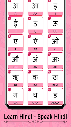 Provide alphabets with English translation, Just tap on any alphabet it will speak and anyone can understand it easily. Take the first step to learn Alphabets and try all methods to speak and learn Hindi fast. App has a clear UI design with anyone who can use it easily.