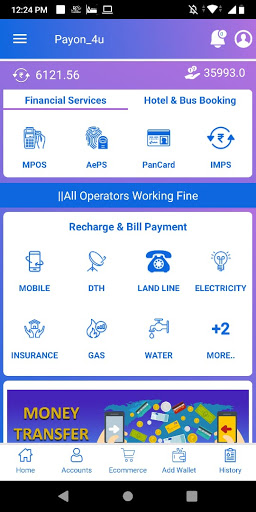 Payon4u is used for Micro ATM, AEPS, Domestic Money Remittance, Bill Payments, Mobile Recharges and many more services through retailer & distributor assisted model.
