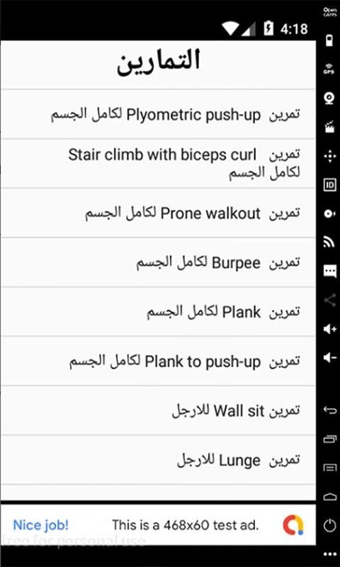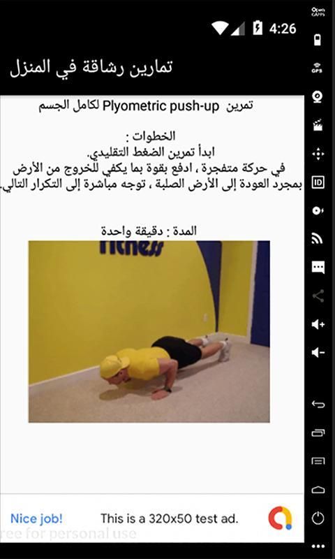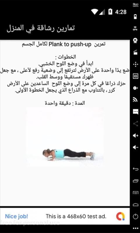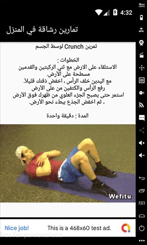 يحتوى على مجموعة متنوعة من التمارين الرياضية للتخلص من دهون الجسم ورفع مستوى اللياقة البدنية لمختلف اجزاء وعضلات الجسم التى يمكن ادائها بالمنزل بدون ادوات او معدات او اثقال للرجال والنساء الكبار والصغار مع شرح تفصيلى لكل تمرين بالصور المتحركة توضح اداء التمرين بالشكل الصحيح