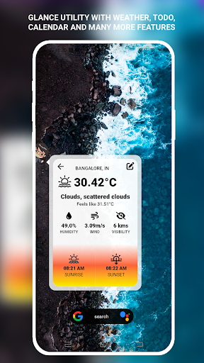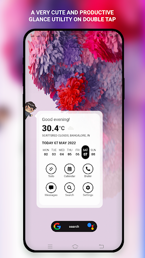 Double-tap on any screen to bring a very cute-looking Glance utility. The glance screen provides multiple widgets as pages,