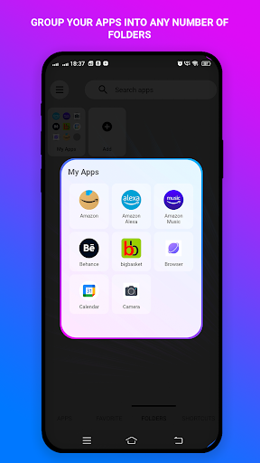 Create folders with your favorite apps and access them easily. Rename, modify or delete the folders anytime. You can add as many folders and as many apps within any folder. Categorization becomes seamless.