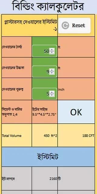 বিল্ডিং তৈরি করার, হিসাব নিকাশ করে দিবে এমন একটি ক্যালকুলেটর এপ, যা আপনাকে বিল্ডিং নির্মাণের খরচাপাতি, মালামালের সম্যক একটি ধারণা দিবে।