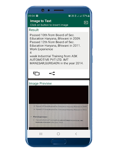 After get text result you can edit of result as your choice. And after scan text image you can see image preview to the matching text result.