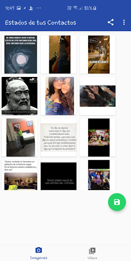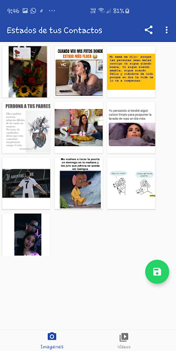 ningún esfuerzo, ya que cuenta con una avanzada tecnología para leer los estados de tus contactos y así poder acceder a tus estados ya sean imágenes y vídeos. así podrás obtenerlos y compartirlos del modo que mejor te parezca, ya sea en tus propios estados o en cualquier aplicación, la imaginación es tu limite.
