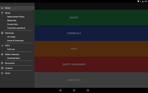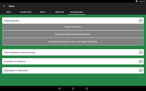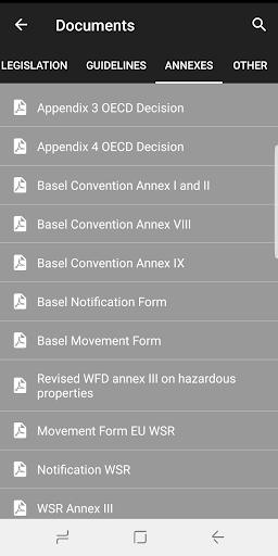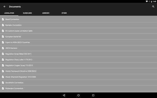 This app provides searchable databases with all annexes containing waste and chemicals, covered by the scope of international and regional agreements. You can search by waste code, chemicals code, customs code or name. It also includes a variety of references, such as guidelines and example documents.