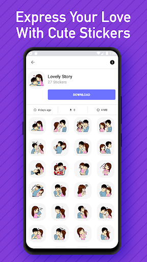 Send big hearts, love stories, cute couples, flowers, stickers for saying sorry, I love you stickers, I miss you stickers, love quotes, unicorns, good morning and good night. You can even find cute fluffy animals that everyone adores.