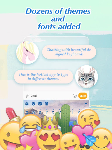 The cuteness effect will bring a spark of fashion in your life and show everyone your good taste in girly keyboard themes. Highly recommended to girls who love watercolor. Get this 100% free keyboard skin now!