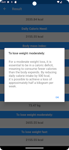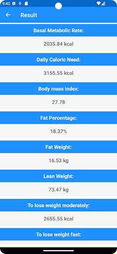App to calculate the basal metabolic rate, BMI and body fat rate.
