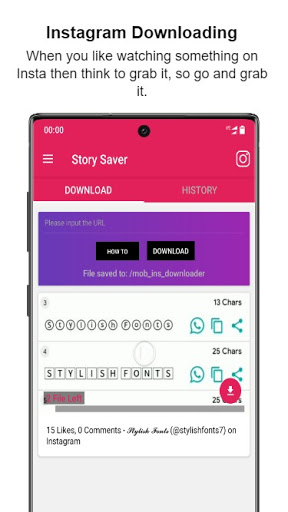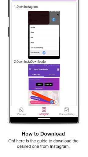 Insta Downloader helps you save Video / Photo / Story / Reels /Highlight from Instagram and IGTV to your phone and you can save photo images, GIF, Video from status of WhatsApp