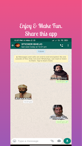 Sticker Bhejo app helps you to express your emotions or make fun with your friends and family, Send stickers on WhatsApp instead of emoji giving you a different experience, make your chat more funny and interesting. This app contains stickers like series, movies, trending, viral, and much more. this app small in size and light. Please rate and share the app with your family and friends.