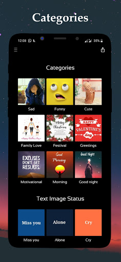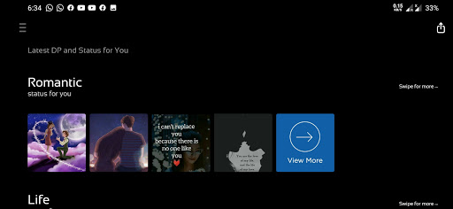 DP and Status has simple user interface with Latest, Trending , Category Tabs.