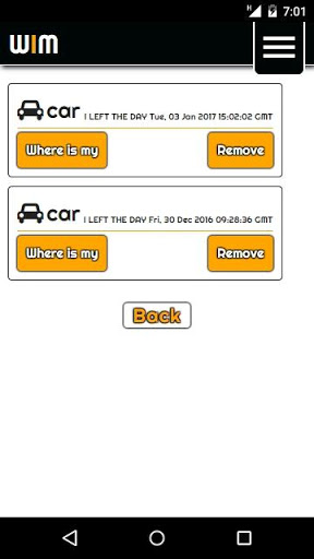 WIM will always provide you with the location of everything you've stored, showing a map with your current location and the location of what you want to find, along with all the additional information provided.