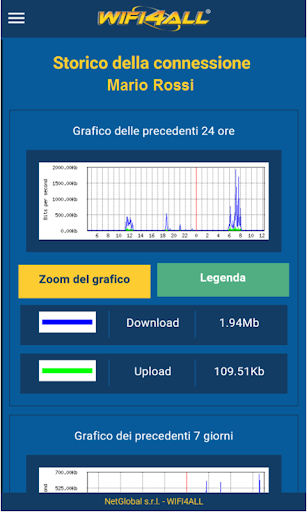 Nella sezione “Storico” si potrà vedere la velocità media avuta negli ultimi giorni divisa in download/upload