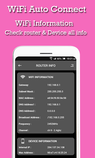 - By using The Wi-Fi auto Connect app you get the Connected Wi-Fi Router Information and also save them for future with best Wi-Fi Automatic app.