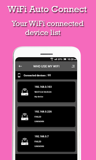 - The Wi-Fi Auto Reconnect app gives you your WiFi user Device Details and also you can block them for using your WiFi Connection with the best WiFi Automatic app.