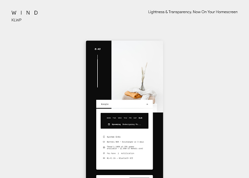 Wind KLWP brings those aspects of natural wind into a language of minimally designed themes. Lightweight, simple yet useful and truly pleasing in daily use