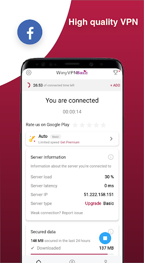 Winy VPN is a Premium and Free VPN proxy service for Android. One of best and free vpns for Hide IP. No registration or pay for using the VPN in Fast vpns Connections mode. Connect to VPN server with one touch. Fast dedicated proxy servers. All functions of our VPN application are available to every user.