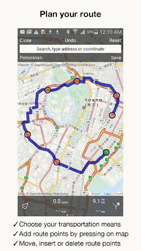 * Percentage of map that is offline accessible is indicated on the top left of the map.