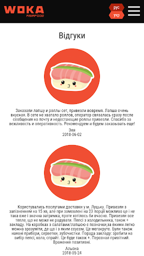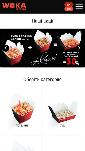 Кто мы? Быстрая и вкусная доставка азиатской еды по Украине WOKA ASIA FOOD. Закажите любимые блюда с помощью бесплатного мобильного приложения от WOKA. Приложение содержит актуальное меню каждого города, акции и предложения и другую полезную информацию. Всего два клика – и любимые суши, лапша, уже у Вас дома или в офисе.