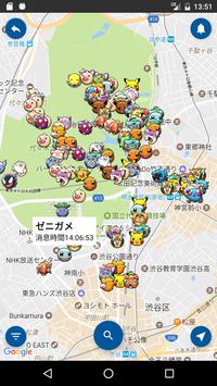 リアルタイムでポケモンの出現位置をマップに表示。