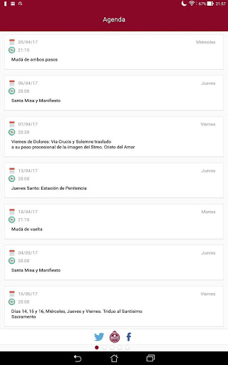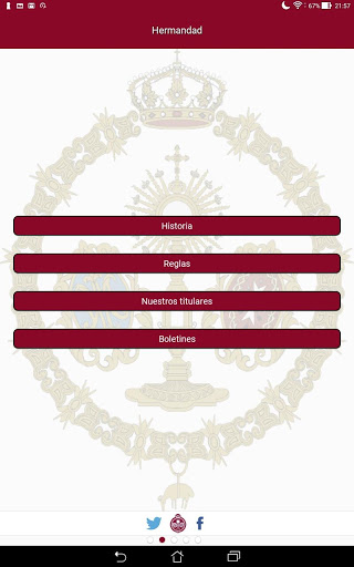 También, puede ver información relacionada con la hermandad como la agenda, los boletines, las reglas, la historia e información relacionada con los titulares.