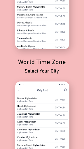 Choose to display current time of city you are in or choose a city from the world for it's GMT time. With World Clock app you can select any country for its time and location.