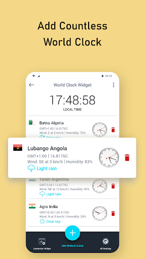 - View list of Cities and Countries and Add multiple countries time and Weather Info.