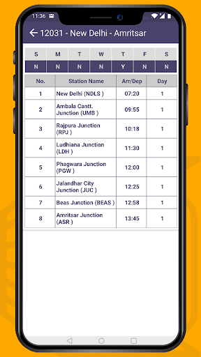 2) Train TIme Table : You can all details of train between station with arrival time at a particular station within specified period of time in a week and day wise.