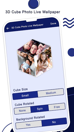 3D Photo Cube Live Wallpaper helps to set your own photos in cube background to set live wallpaper.