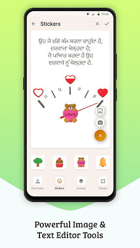 It's a nice app that lets you customize your photos quickly. You can choose a photo from your phone gallery or capture with the camera of your device. After that, crop your image if necessary and now you can transform your pictures by adding beautiful Punjabi Text on it. By this way, you can wish your special ones with text on image and make him/her very impressive.
