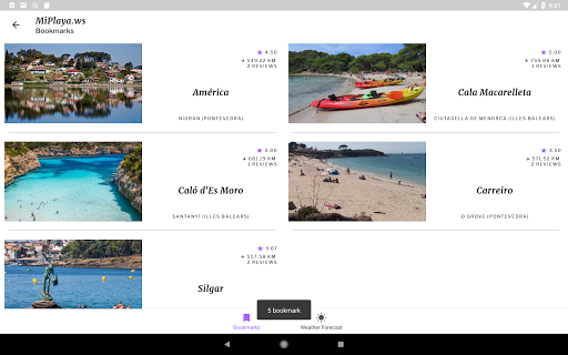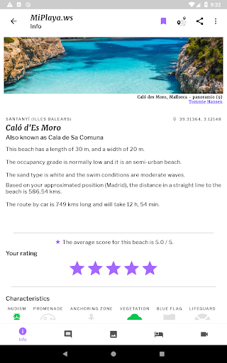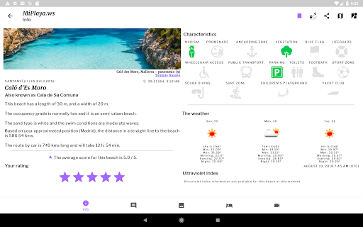 At MiPlaya.ws you will find more than 3400 Spanish beaches, and a lot of related information, like hotels, descriptions, pictures, and reviews of the users.