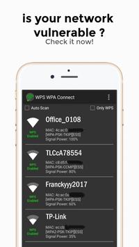 Wi-Fi Protected Setup (WPS; Wi-Fi Simple Config) is a network security standard to create a secure wireless home network using wps button on router. Wps Wpa Connect checks your network if its secure connection through WPS protocol.
