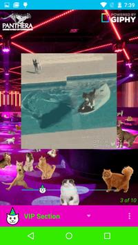 Users swipe left to see new gifs, swipe up to share them, and swipe down to save. Gifs are saved to a "VIP Section" and can be permanently accessed after a $1 or more donation. Join the Cat Party!