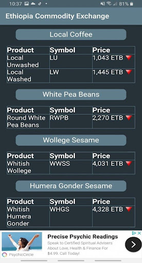 Ethiopia Commodity Exchange Updated Daily. የኢትዮጽያ ምርት ገበያ የየቀኑ ዋጋ Daily prices of coffee, beans, sesame, etc...