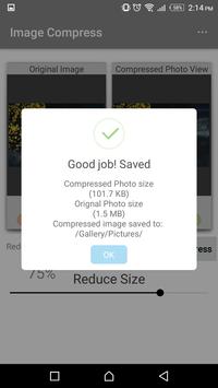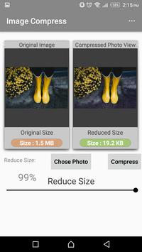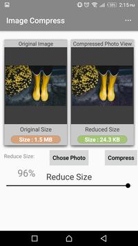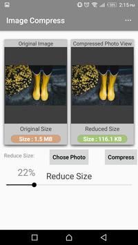 compressed size of that photo is less than 1 mb or less than 300 kb, quality is still the same. Image Compress reducing is really fast, it will reduce photo in milliseconds. It is amazing...!!!!