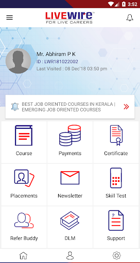 LIVEWIRE App feature includes Student ID activation, Course & Fee details, Day wise Curriculum, Job Openings, Technical news letter, Global Competency certificate, Earn While you Learn, Certificate request, Deep Learning Module, Industry Connect Club, Webinars, Quick contact, New launch Update and many more.