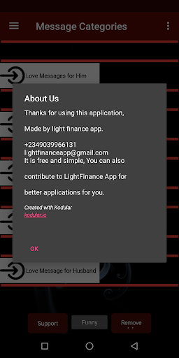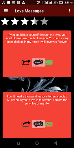 This App is wanderful it is simple and awesome i wish the next version will have less ads. But it contains some awesome love Messages that are pretty cool.