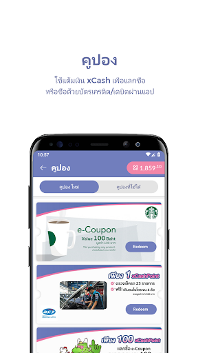 xCash มีคูปองต่างๆ ที่คุ้มค่าให้คุณได้เลือกซื้อ เพียงใช้แต้มงิน xCash เพื่อแลกซื้อ หรือซื้อด้วยบัตรเครดิต/เดบิตองคุณผ่านแอป xCash