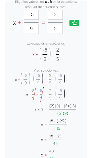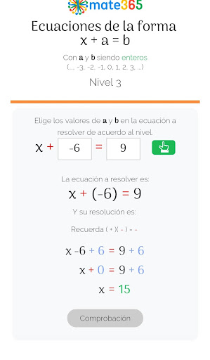 MATE365는, XA = B, 리터럴의 다른 수치 값을 고려할 때, 자연 숫자 (n)의 세트에서 A & B 형태의 수천 개의 다른 사례의 수천 명의 다른 경우의 해상도를 제시합니다. 정수 (z) 및 합리적 (Q) 또는 긍정적이고 부정적인 징후가있는 공통 및 부적절한 공통 분수. 이러한 유형의 방정식은 가장 기본적이지만, 더 복잡한 선형 방정식의 해결과 3,4,5, 6 개의 앱과 6 개의 컬렉션 6에서 제시하는 학습은 매우 중요합니다.