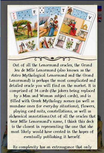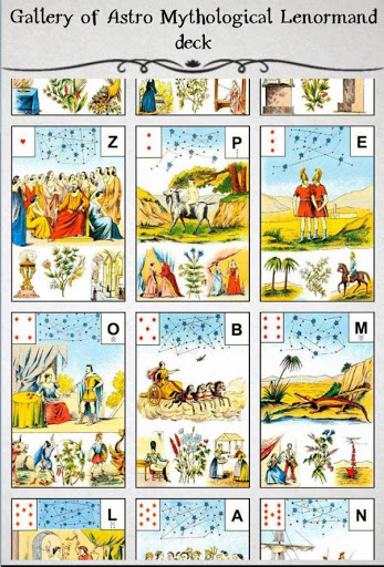 The main feature of the Grand Lenormand divination - Astro-mythological deck of cards compiled by Maria Lenormand herself on the basis of her profound knowledge in mythology, astrology, numerology, etc.