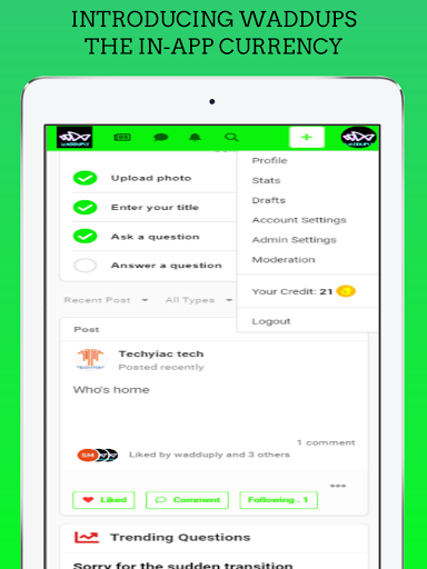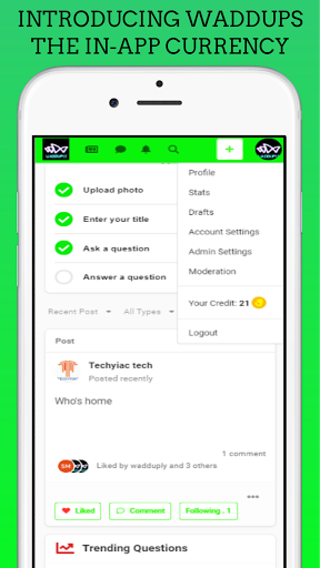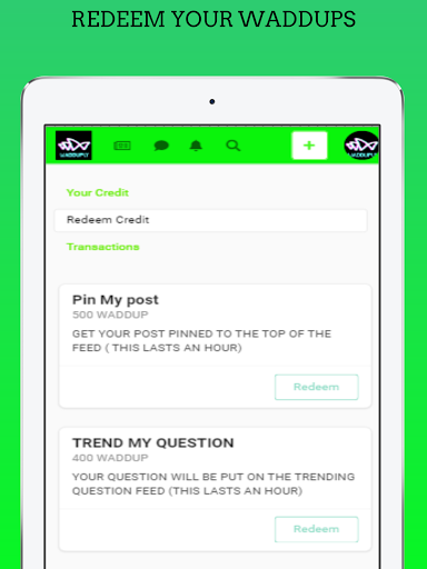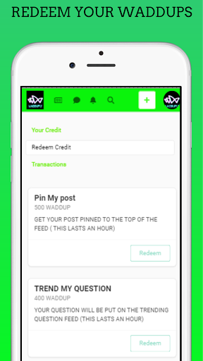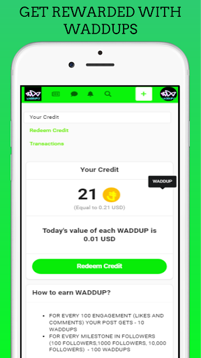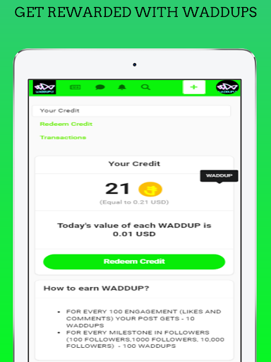 WADDUPLY GIVES YOU IN APP CURRENCY CALLED WADDUPS, THIS CURRENCY IS USED TO BOOST YOUR POST OR QUESTION.