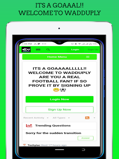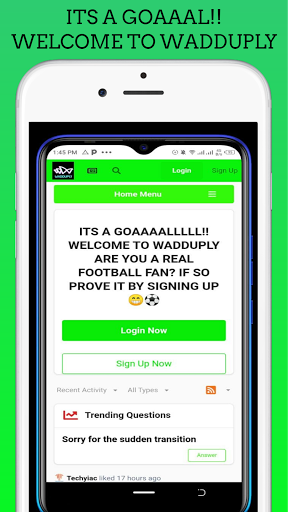 WADDUPLY IS A SOCIAL MEDIA PLATFORM FOR FOOTBALL FANS, THAT LETS THEM EARN IN-APP CURRENCY FOR THEIR ATTEMTION, CONTENT AND ENGAGEMENT.