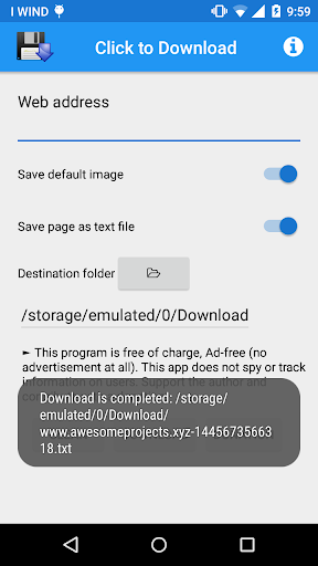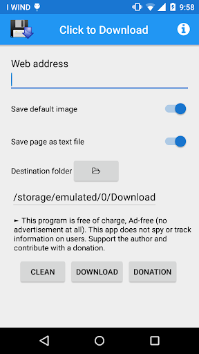 When you browse from home using your computer, you can choose to save the web page or photo that you are viewing, this is sometimes difficult or even impossible to do using smartphones or tablets. "Click to Download" helps you solve the problem, you can write the web address you want to save or if you are browsing or using any app, you can select the share icon