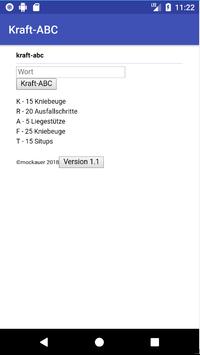 Man gibt ein Wort ein und dann bekommt man verschiedene Übungen pro Buchstabe, die man ohne Hilfsmittel machen kann. Unter anderem 10 Liege oder 15 Kniebeugen. Pro Buchstabe ist eine Übung festgelegt.