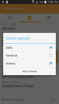 Matches disappear when the weekend ends. Choose who you want to keep in touch with by adding them as friends.