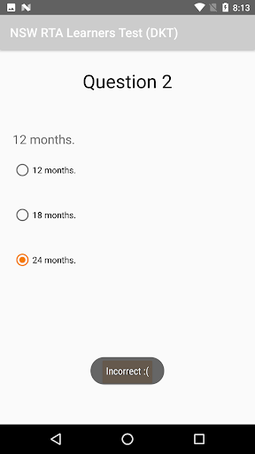 Take a simulated practice exam for the Vic Roads DKT to obtain your learners permit. The app will provide you with 32 randomly generated questions each time you take the exam.