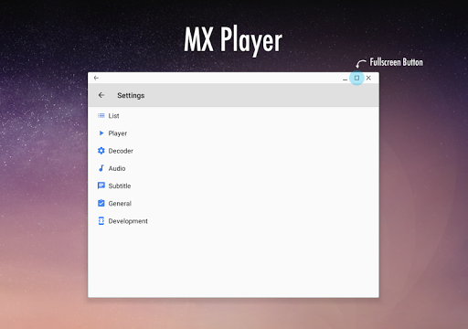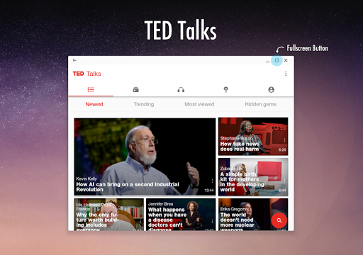 You can enjoy various apps such as Kodi, ES File Manager, MX Player, TED, ... in fullscreen.