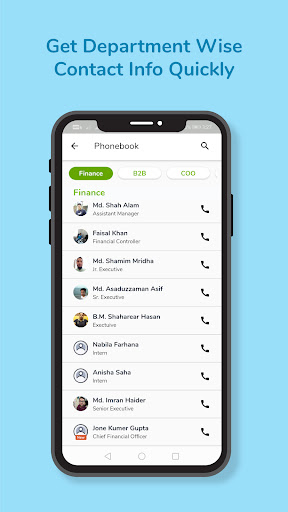 Manage employee information: All employees can get their colleagues' contact numbers, email addresses, and other basic info on their app. No hassle now to find colleagues' data and contact them via phone call, email, text, or WhatsApp.