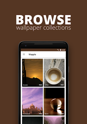 Wopple brings to you wallpapers of all kinds - nature, architecture, the sun, the sky, the stars and everything else. An ever growing collection of beautiful images, ready to make you want to check your phone's home screen more often.