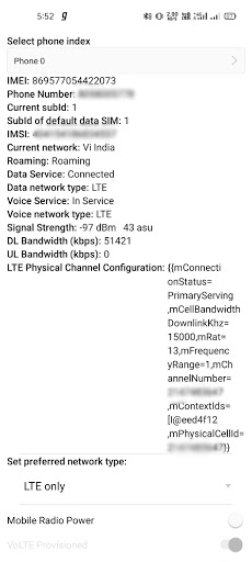 Force LTE only is an utility app which works completely offline opens a secret menu where advanced network configurations can be selected such as LTE only, WCDMA only and other configuration.